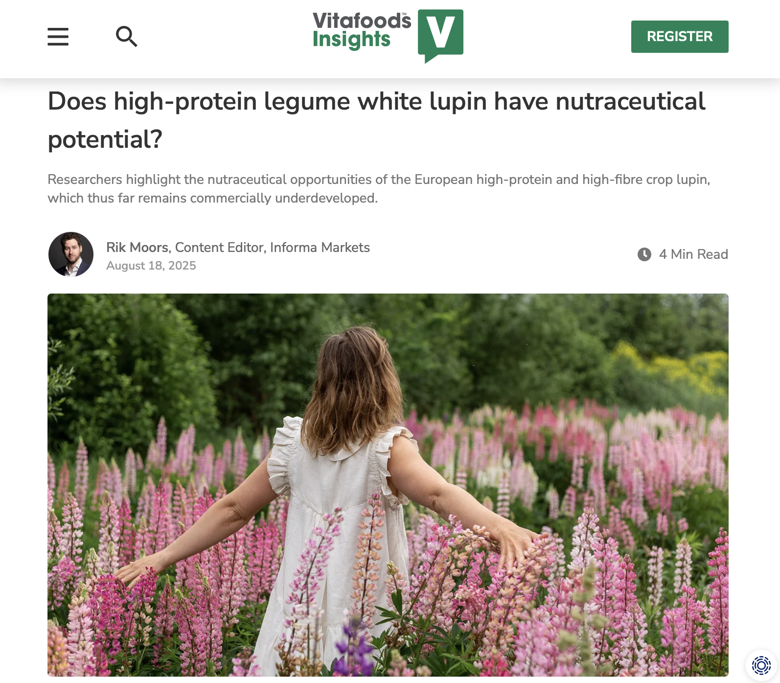 An article on white lupin and DIVINFOOD published in Vitafoods Insights